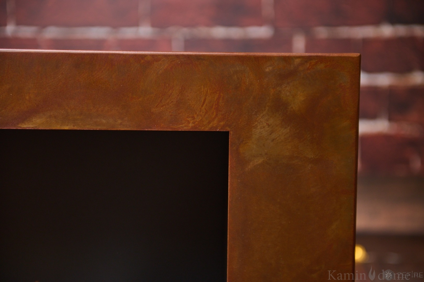 Широкая рама очага выполнена из легированной стали CorTen, или COR-TEN, — материала, который быстро набирает популярность в архитектуре и дизайне интерьеров. Эффектная ржавая поверхность на самом деле практически не подвержена атмосферной коррозии. Поэтому огненный декор из легированной стали можно устанавливать не только в квартире или частном доме, но и на улице, например, на крытой веранде.