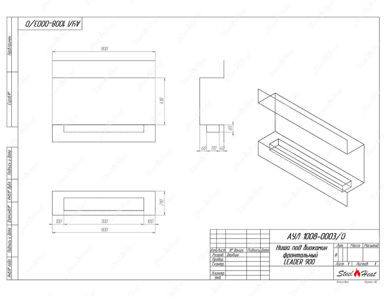 Встраиваемый Биокамин фронтальный SteelHeat Leader 900 предназначен для встраивания в глухие ниши из гипсокартона, кирпича, пеноблоков, бетона.