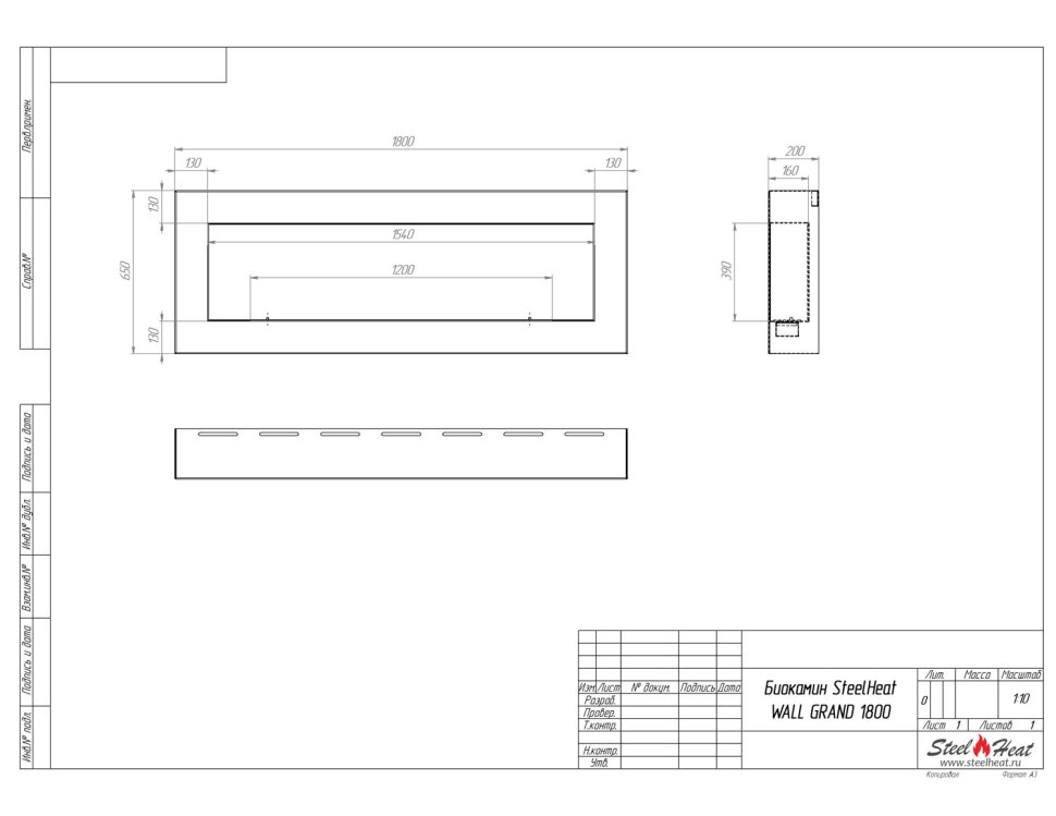 Биокамин SteelHeat WALL GRAND 1800 черный, стекло