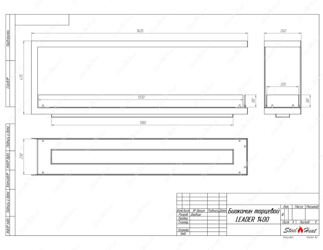 Биокамин торцевой SteelHeat Leader 1400