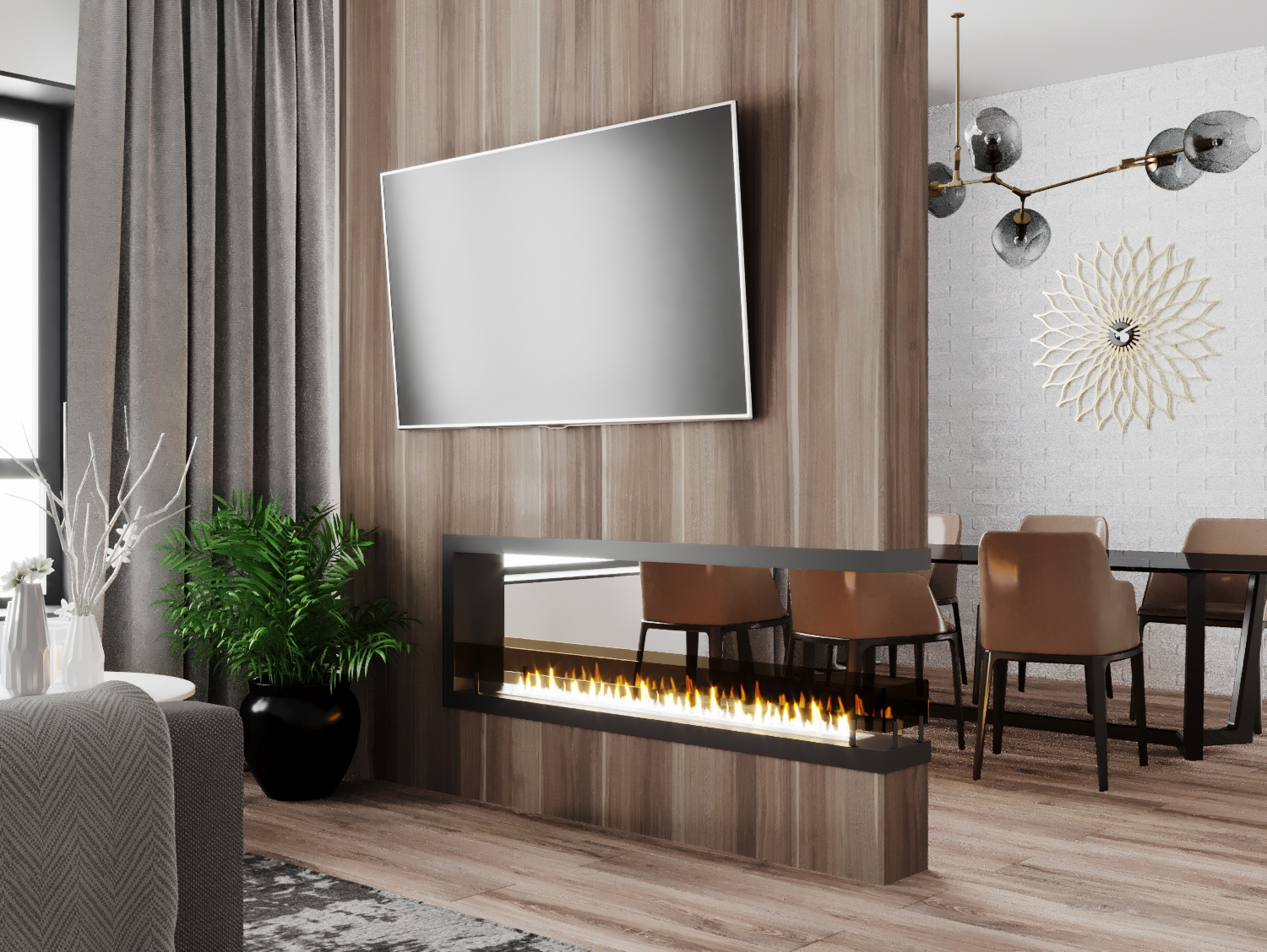 Биокамин встраиваемый торцевой сквозной Plamenika Trinity 1500х500