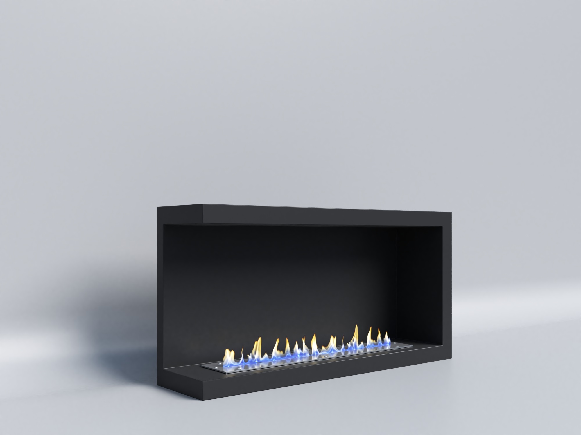 Очаг – это емкость куда заливается жидкое топливо. Емкость внутри заполняется керамическим материалом, который впитывает биотопливо, и в случае опрокидывания камина топливо не разливается. За счет этого конструкция стала полностью пожаробезопасной. Очаг встраивается в корпус из стали, который окрашивается специальной термостойкой краской, или же в заранее подготовленную нишу, изготовленную из негорючих материалов.