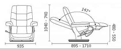 Комфортное сиденье сконструировано с наклоном к спинке и скошенным наружным краем. Такая форма позволяет сидеть с плотным прилеганием поясницы и избежать затекания ног. Откидная подножка позволяет высоко поднять ноги, снять нагрузку и усталость.