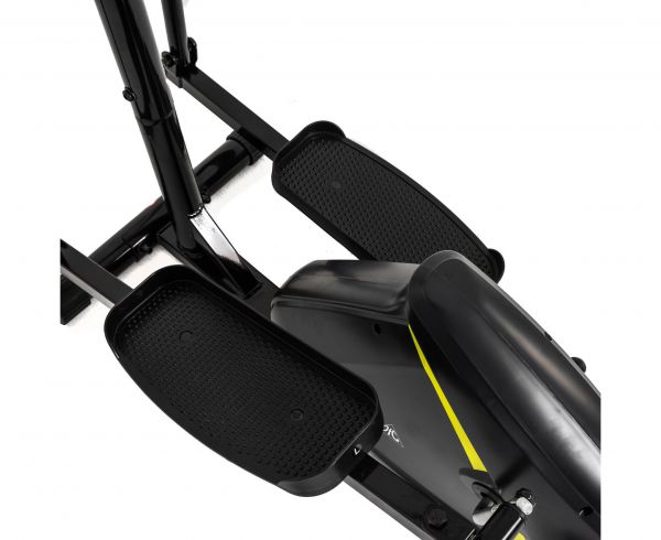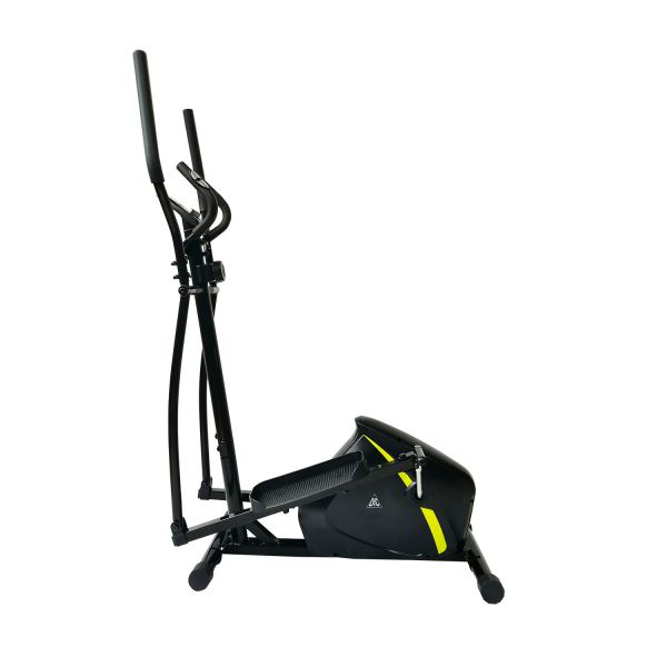 Среднегабаритный эллиптический тренажер для домашнего использования. Тренажер с высокоскоростным маховиком и магнитной системой нагружения. Механическая регулировка нагрузки, 8 фиксируемых положений нагрузки с помощью удобной ручки на стойке тренажера.